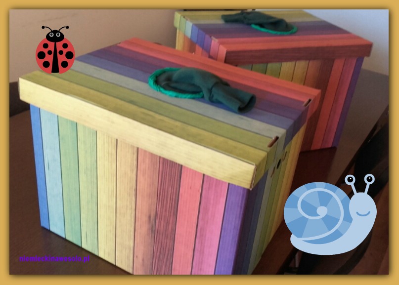Bez wyciągania rzeczy z pudła uczniowie zgadywali co znajduje się w środku, używając jedynie zmysłu dotyku. Następnie zapisywali wyrazy w języku niemieckim na kartkach papieru. Ostatecznie uczniowie kolejno wyciągali przedmioty z pudełek, prezentowali całej klasie i zapisywali na tablicy. Za poprawnie napisany rodzajnik grupy dostawały dodatkowe punkty.